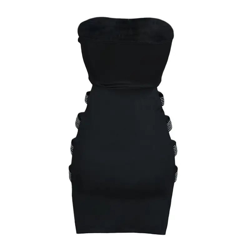Women's Strapless Solid Color Rhinestone Embellished Tight Dress