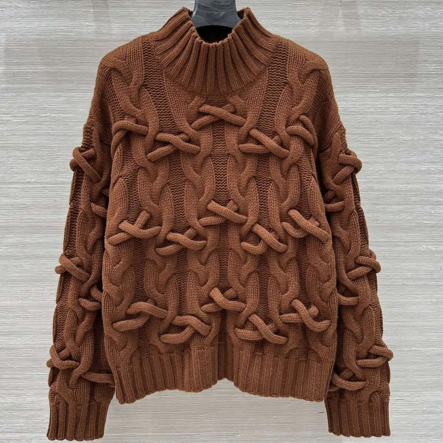 Women's Wool Mock Neck Thick Oversize Long Sleeve Pullover Sweater