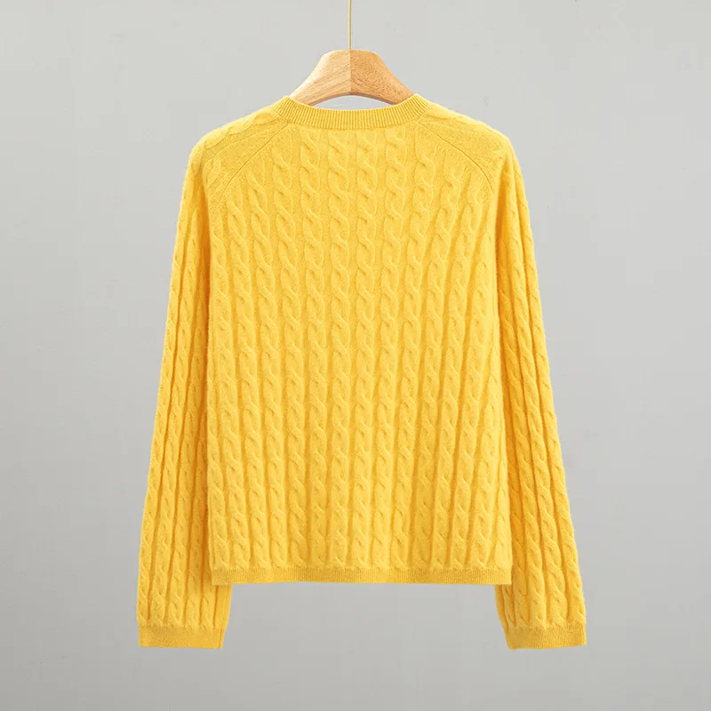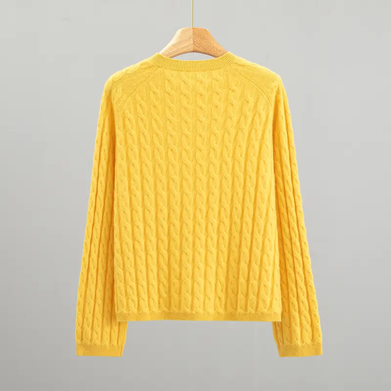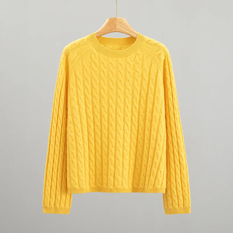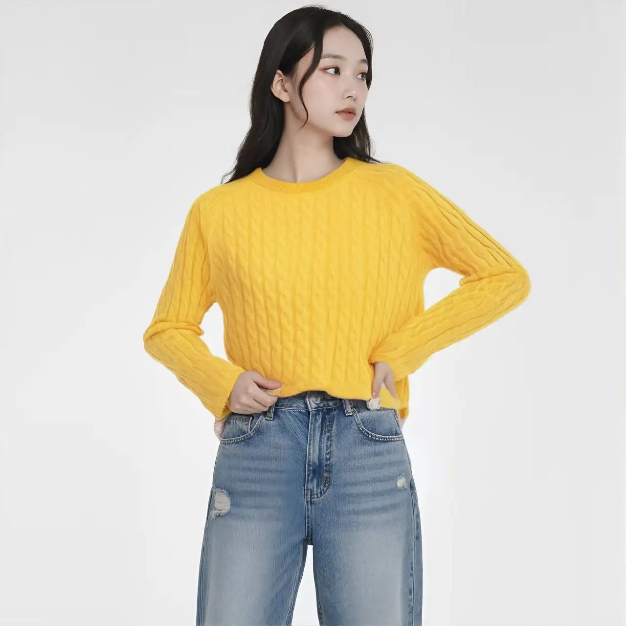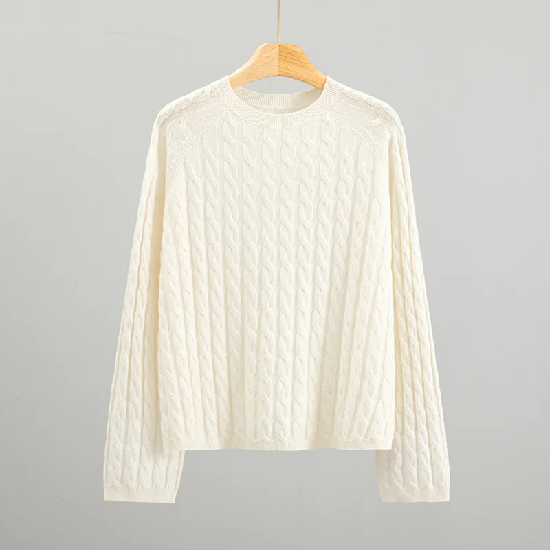 Women's Pure Cashmere Round Neck Loose Fit Lazy Knit Pullover Sweater