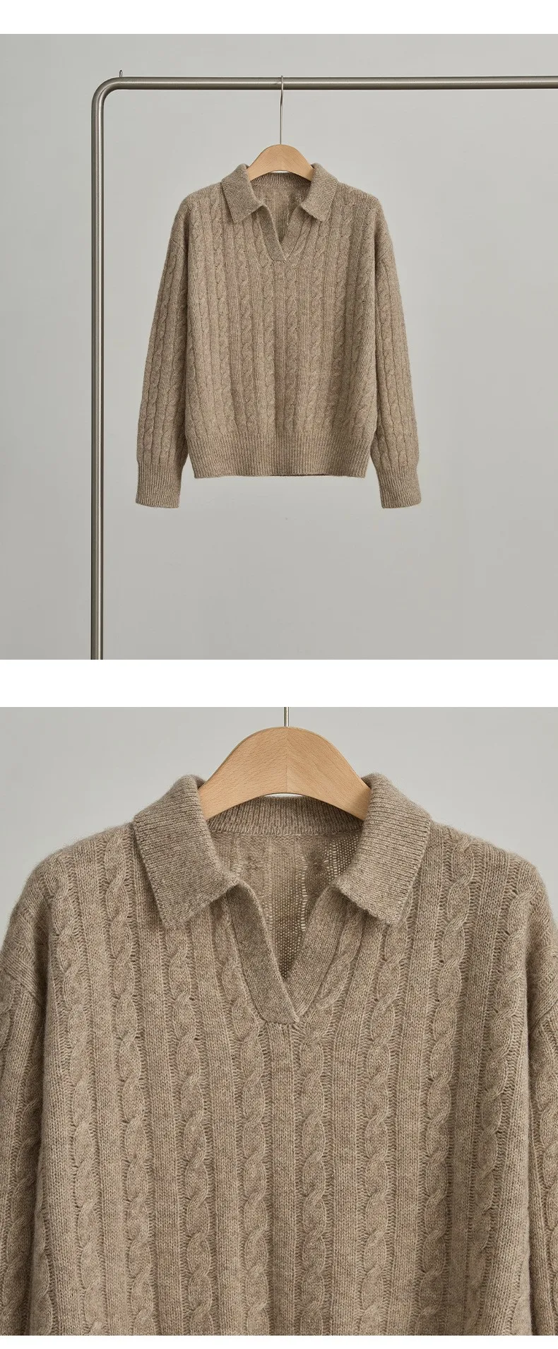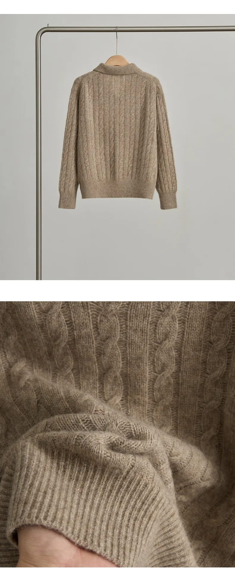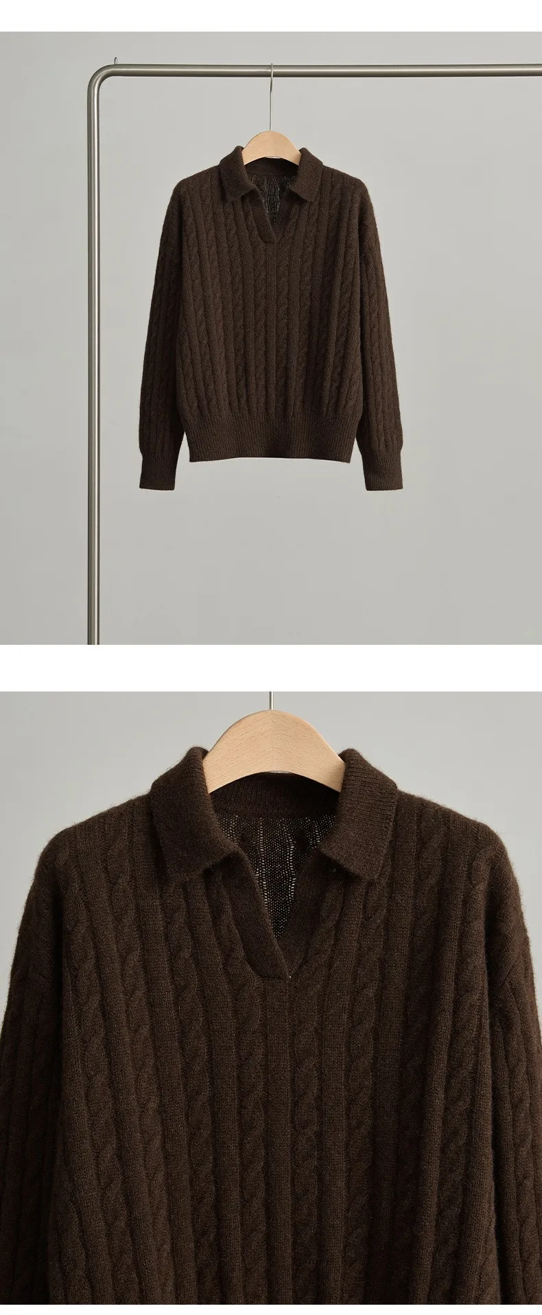 Women's Turn-Down Collar Twist Long Sleeve Thickened Pullover Sweater