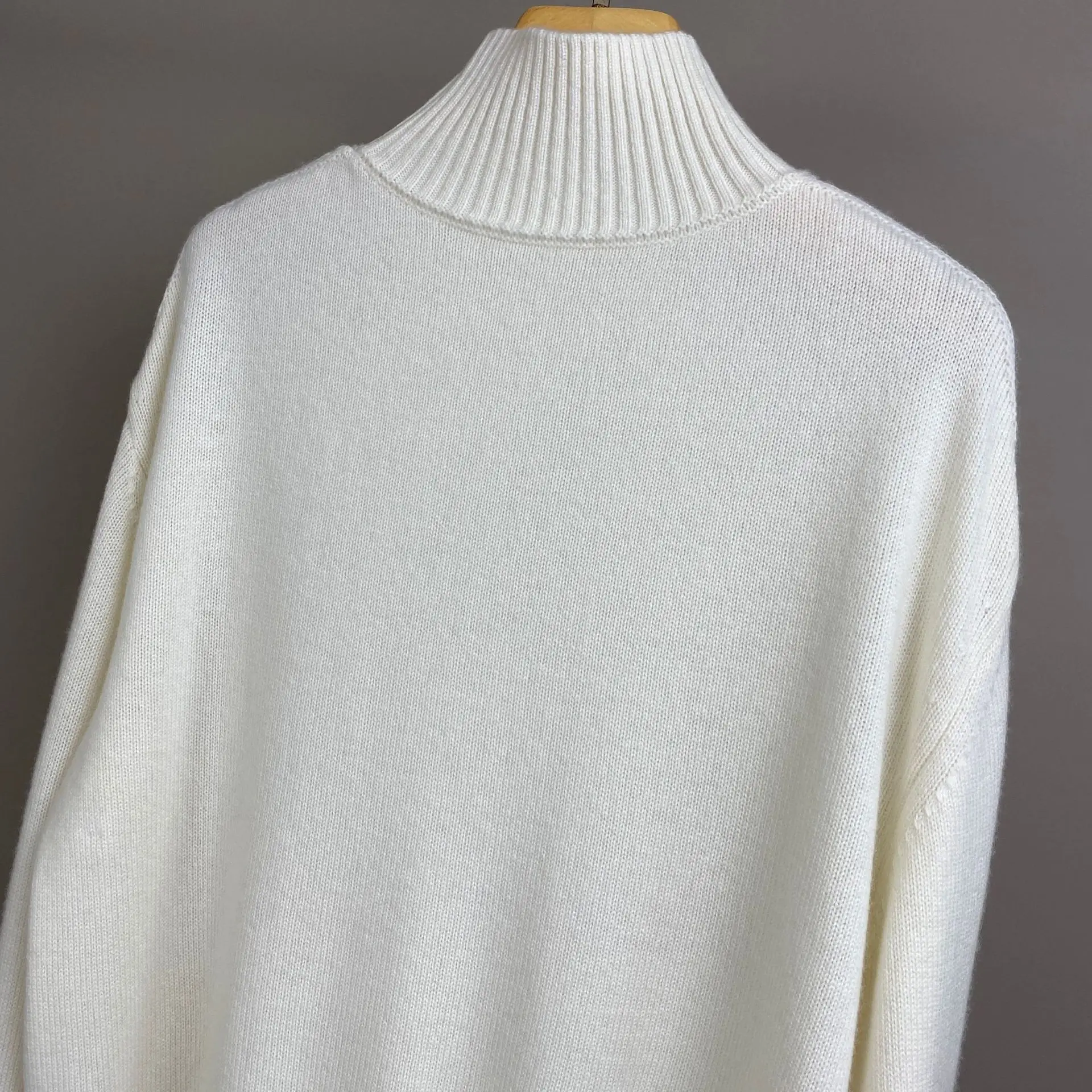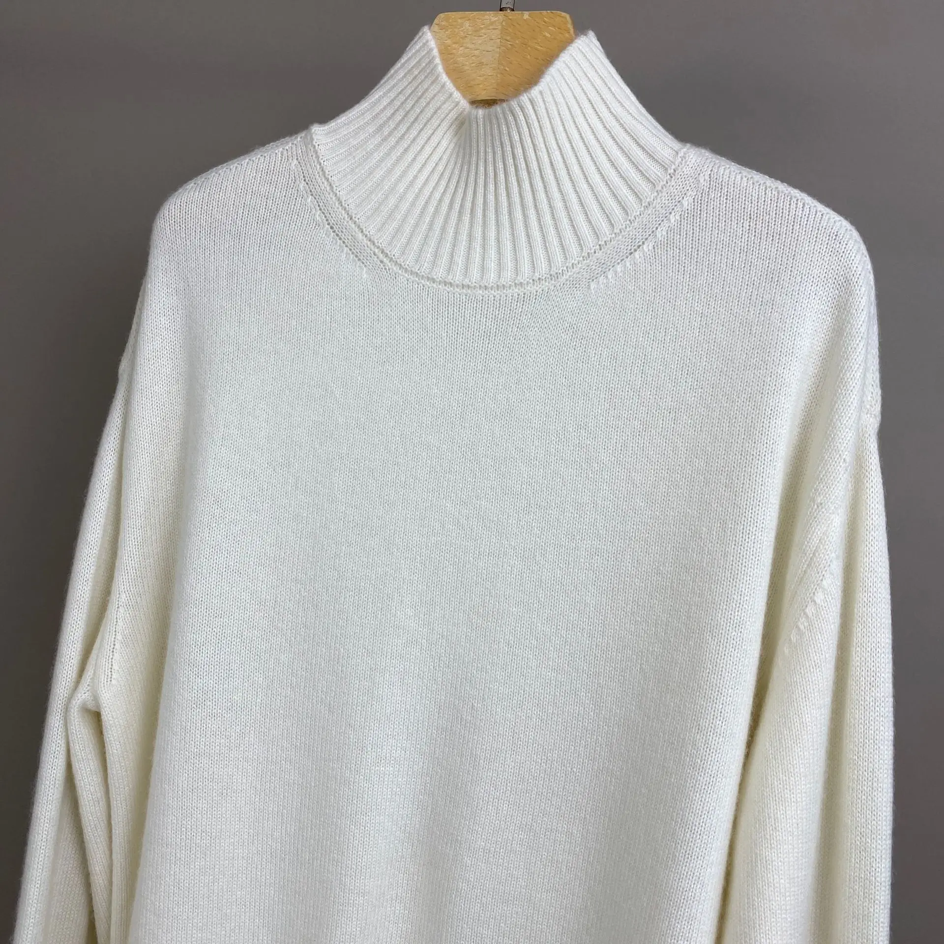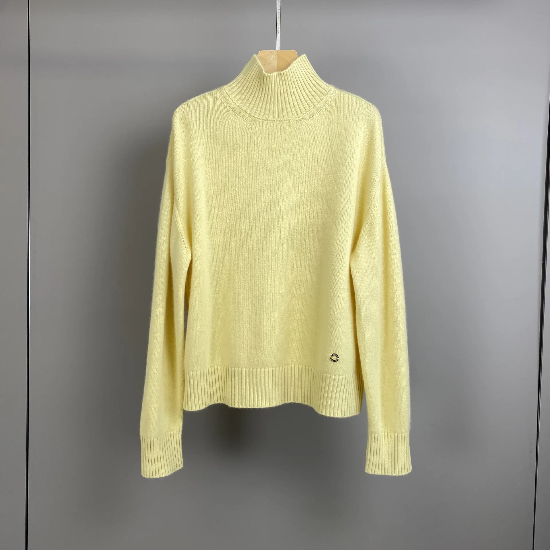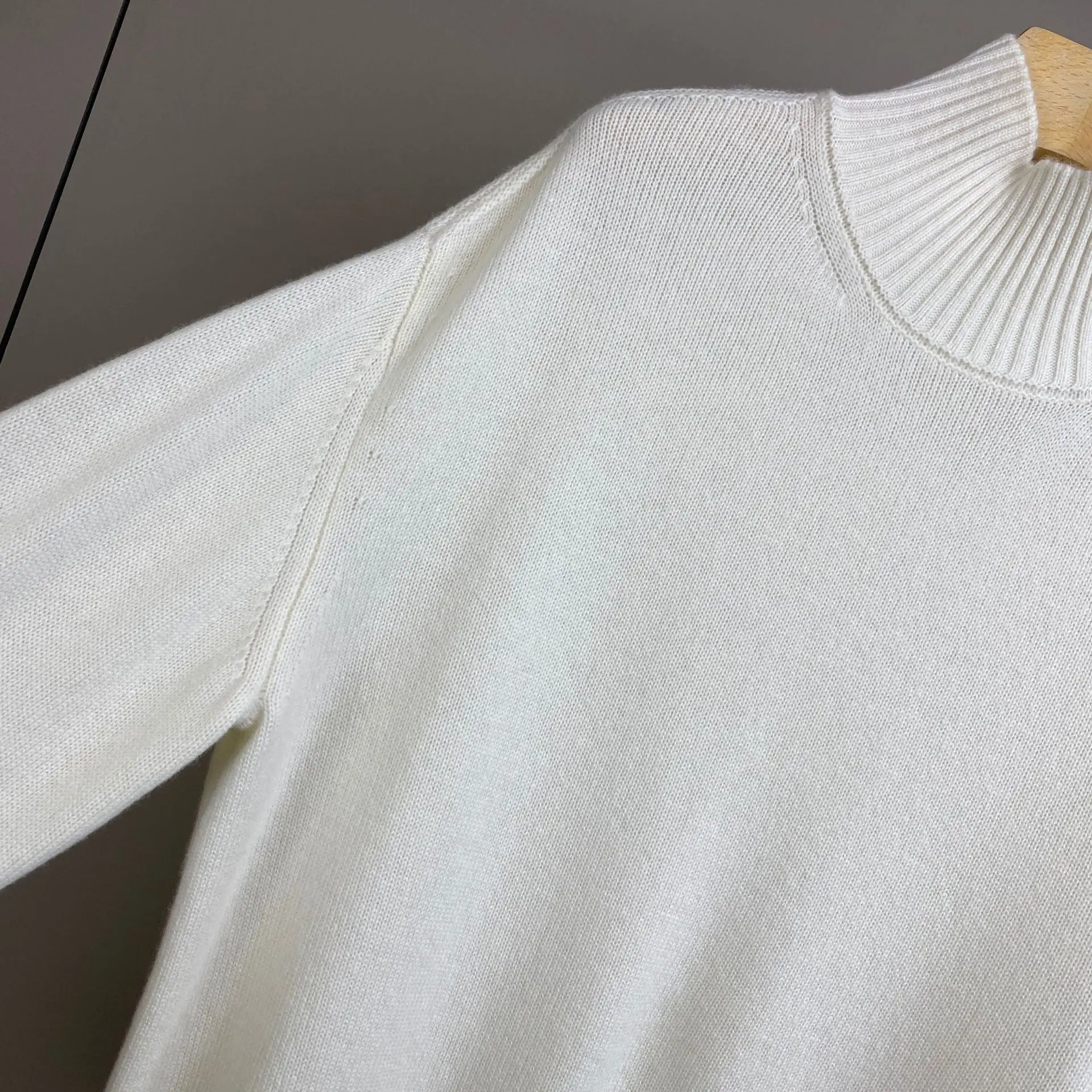 Women Pure Cashmere Slim Half High Collar Long Sleeve Casual Knitted Pullover