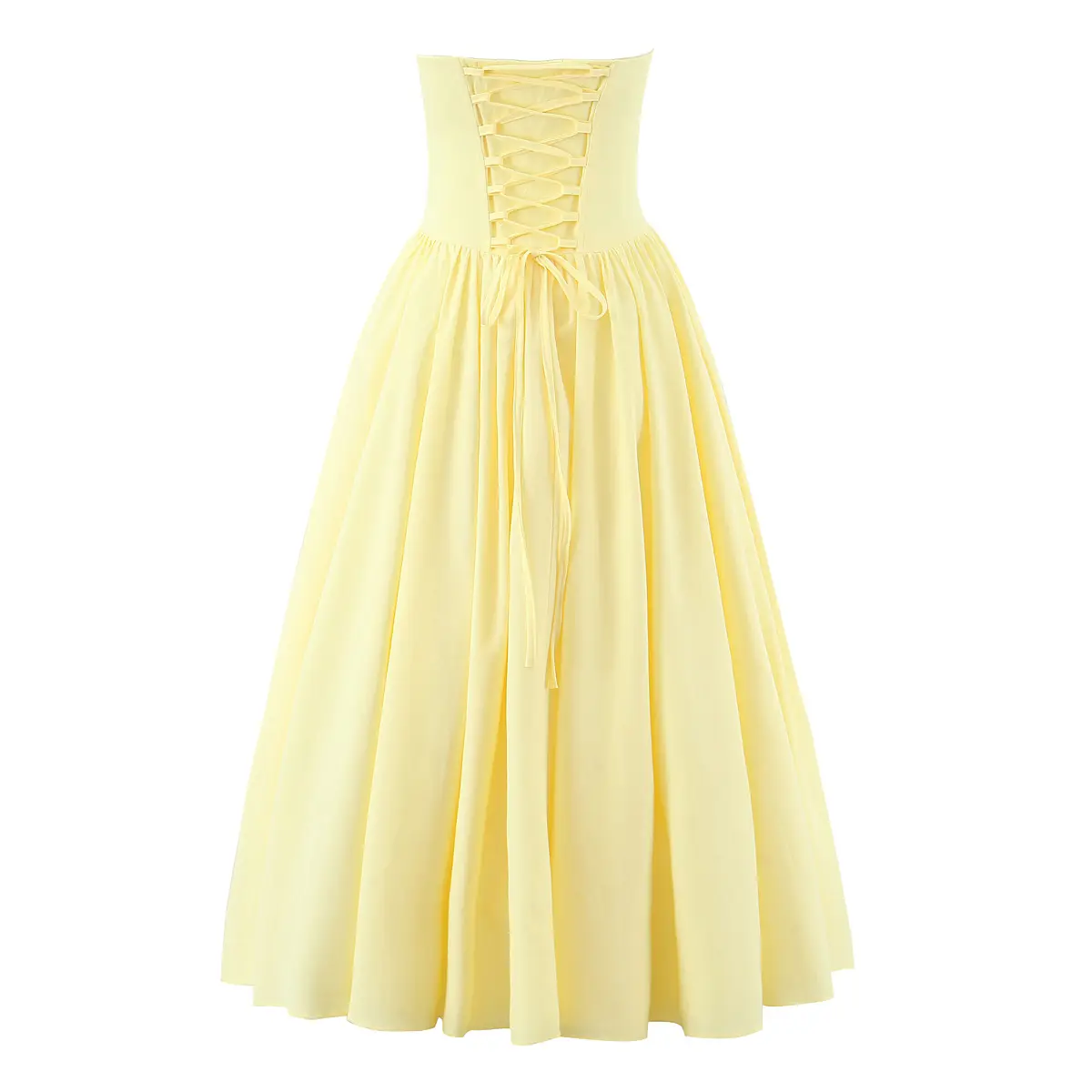 Long Strapless Dress Featuring Cross-Strap Lacing And Open Back